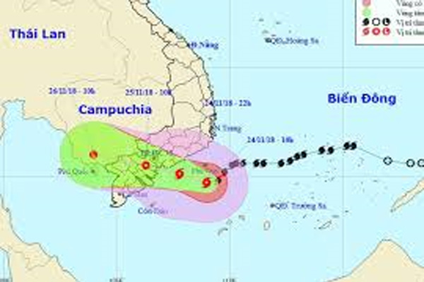 Theo Trung tâm Dự báo Khí tượng Thủy văn Quốc gia, hồi 10 giờ ngày 24/11, vị trí tâm bão số 9 ở vào khoảng 9,7 độ Vĩ Bắc; 109,0 độ Kinh Đông, cách đảo Phú Quý...