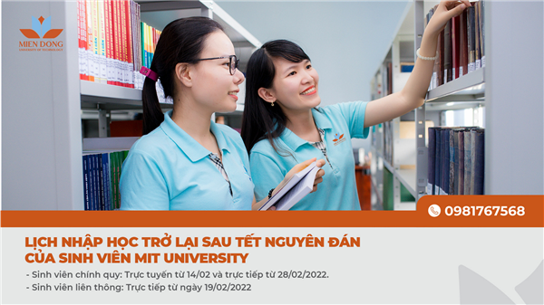 Sinh viên MIT University nhập học trở lại sau Tết Nguyên đán: Sinh viên chính quy bắt đầu học trực tiếp từ ngày 28/2/2022 và sinh viên liên thông từ ngày 19/02/2022.