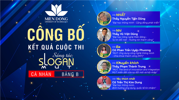 Cuộc thi “Sáng tác Slogan MUT” nhằm thu hút các ý tưởng sáng tạo của tất cả cán bộ, nhân viên và sinh viên Trường Đại học Công nghệ Miền Đông....