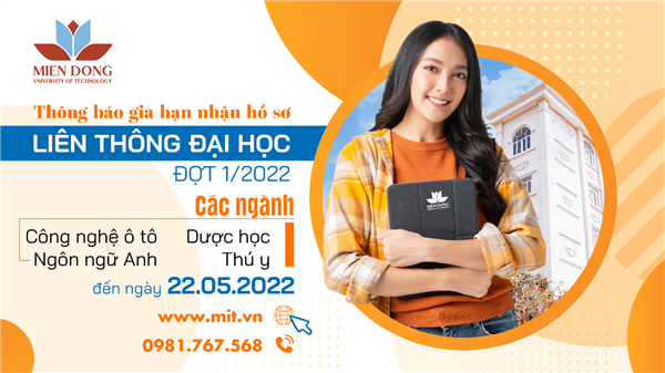 Thông báo gia hạn nhận hồ sơ xét tuyển liên thông đại học tại MIT đến hết ngày 22.05.2022, các ngành: Dược học, Thú Y, Công nghệ Ô tô, Ngôn Ngữ Anh. Hotline tư vấn 0981767568.