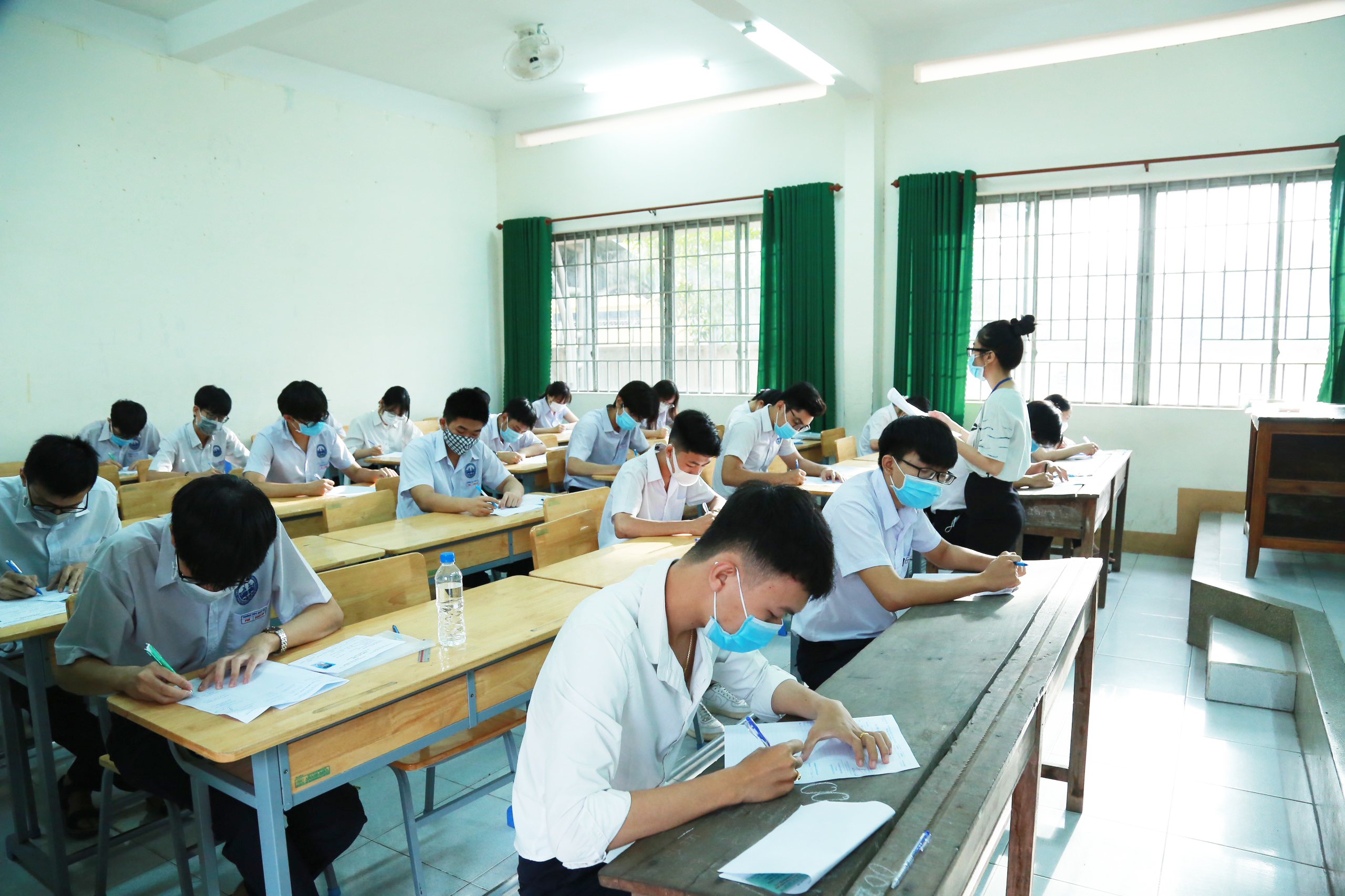 Hình ảnh thí sinh tại trường THPT Nam Hà (Biên Hòa) tham gia thi tốt nghiệp THPT 2021 đợt 1 - Ảnh BĐN
