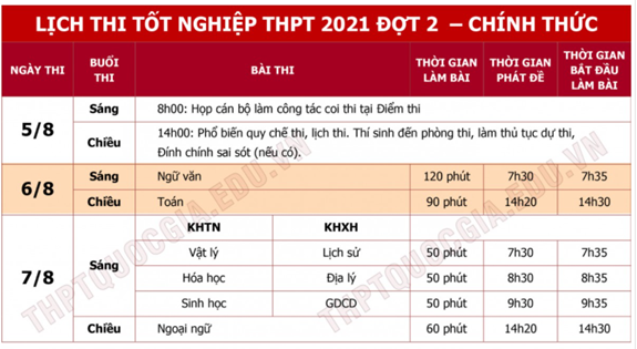 Lịch thi tốt nghiệp THPT 2021 đợt 2