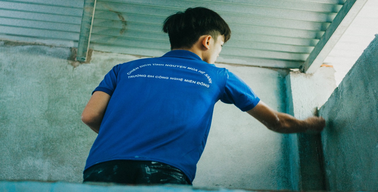 (Bạn Lê Tuấn Anh – sinh viên ngành luật kinh tế đang sơn nhà cho gia đình)