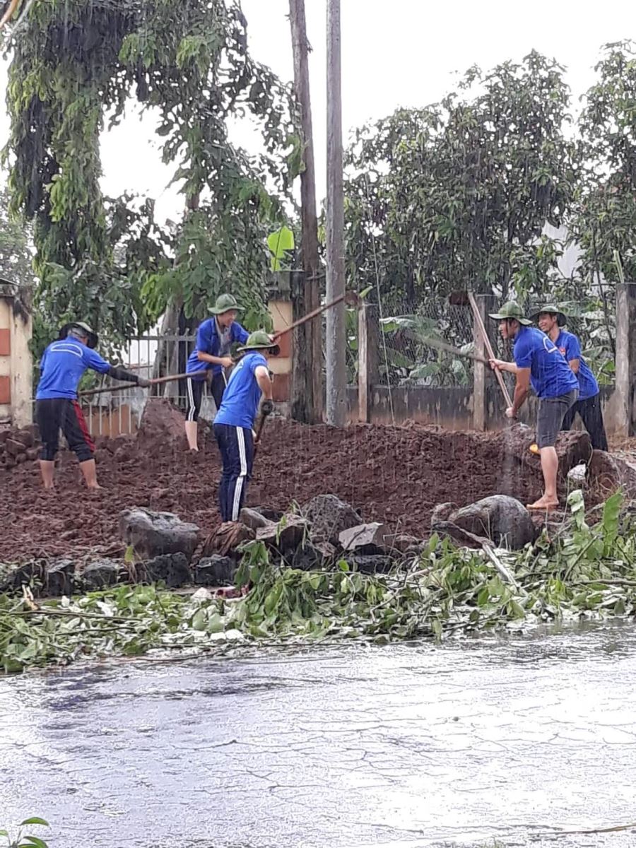- Phát quang bụi rậm và lắp bằng mặt đất khuôn viên trước cổng UBND xã Phú Hòa.