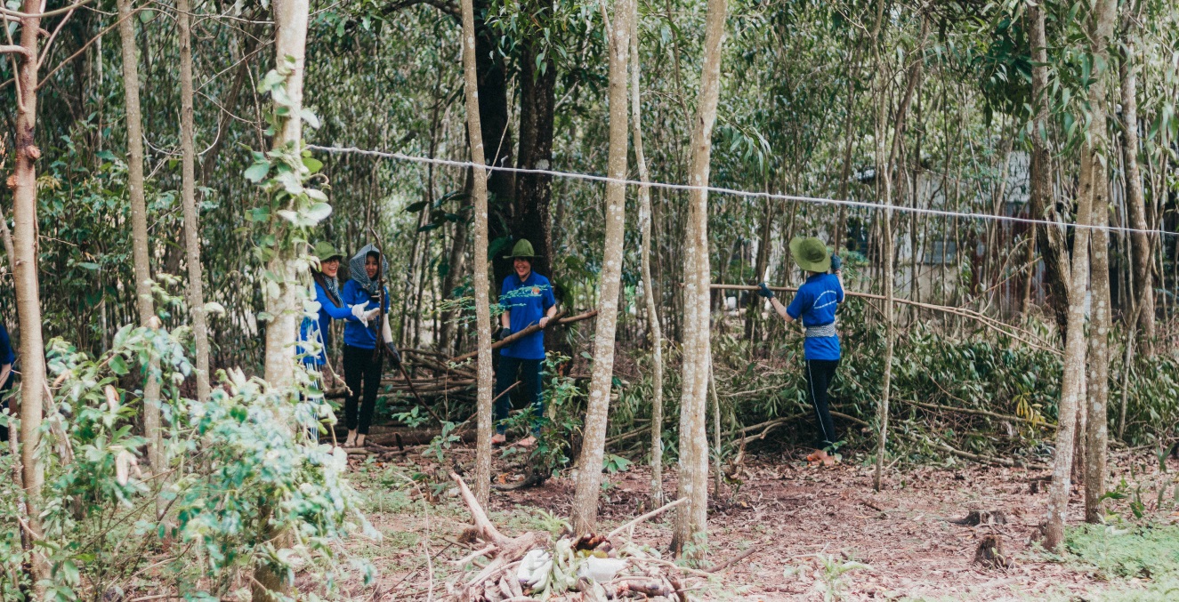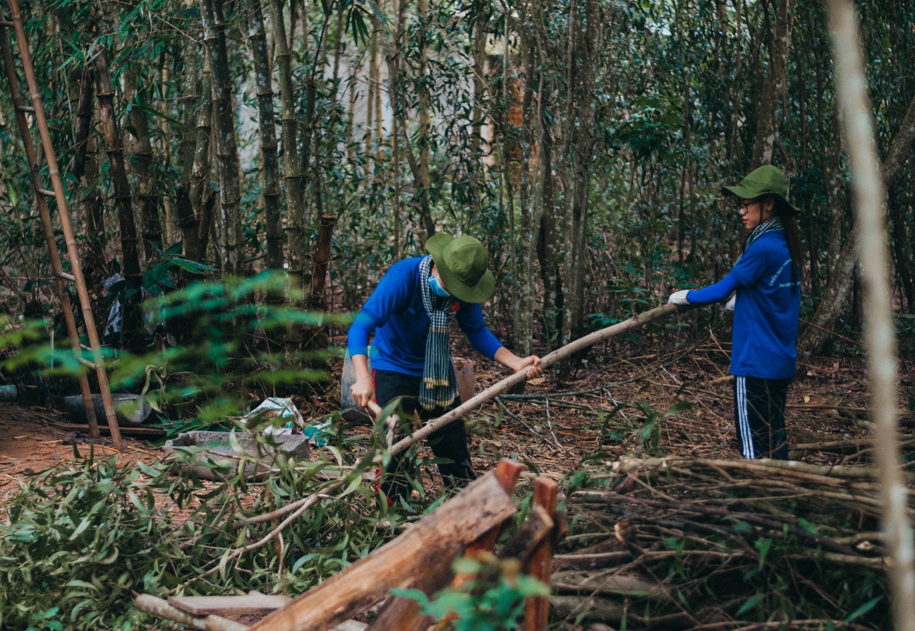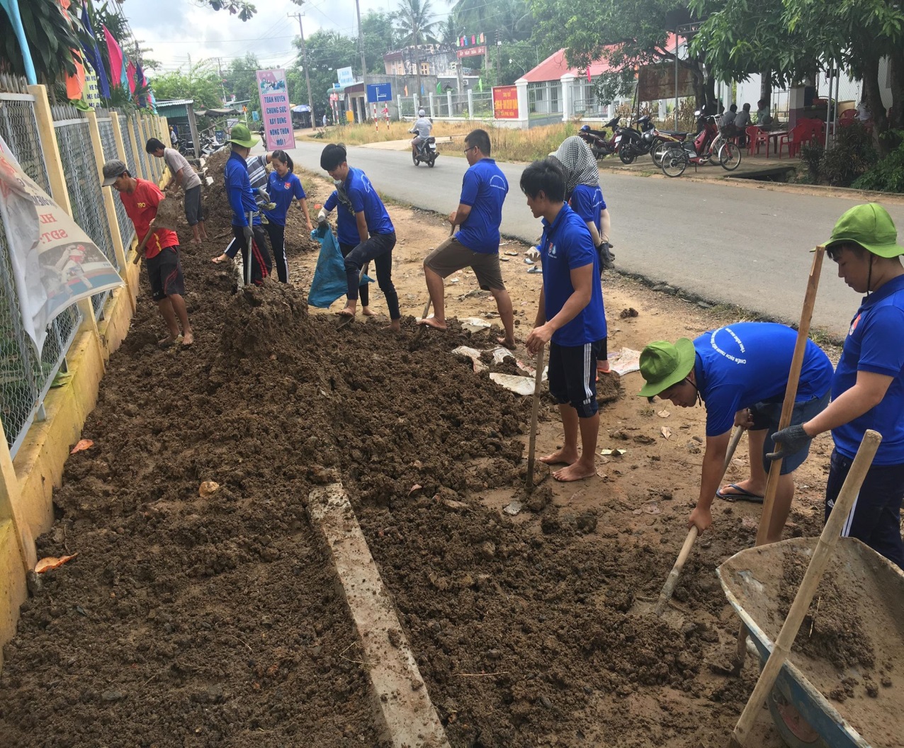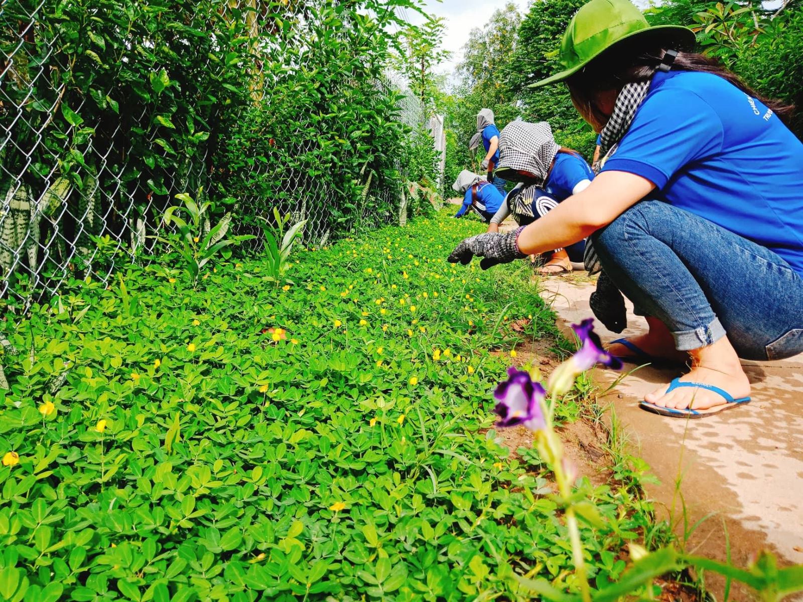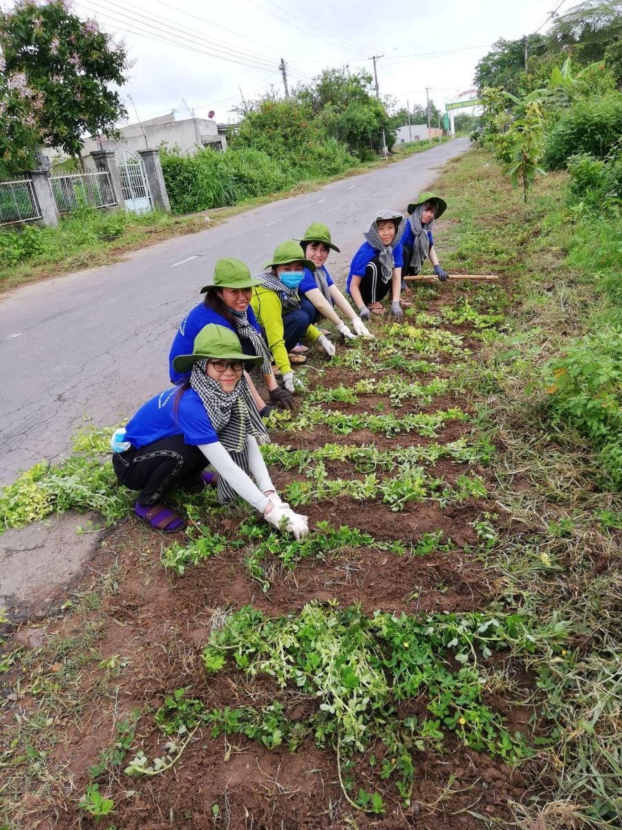 - Làm sạch môi trường như làm cỏ và trồng hoa trên đoạn đường dài khoảng 3 km trên đại bàn hoạt động.