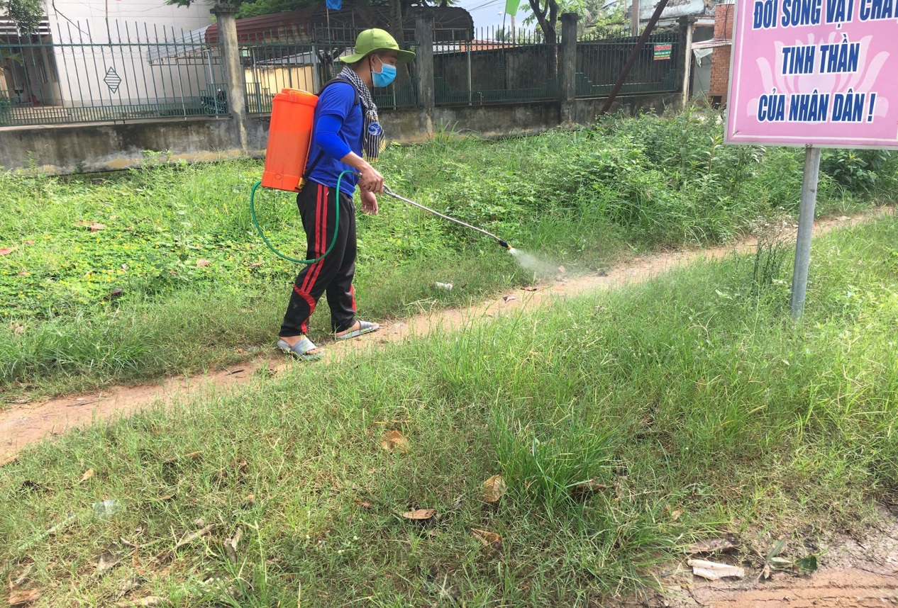 - Phun thuốc sâu diệt cỏ trên tuyến đường dài khoảng 5km tại địa bàn đóng quân.