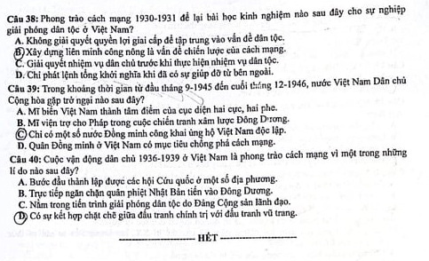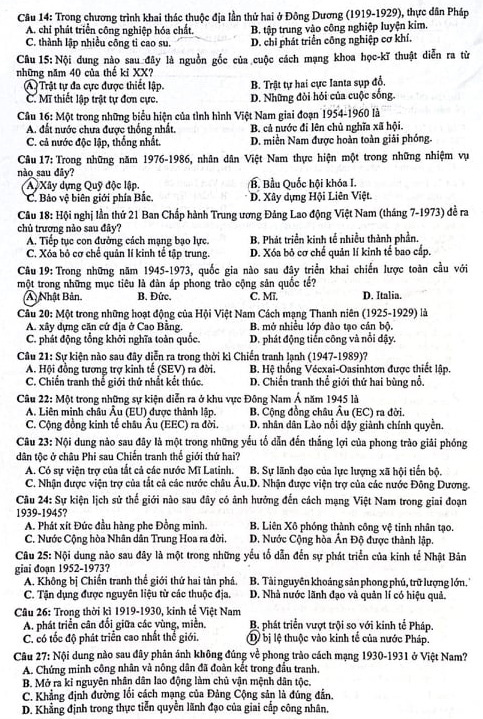 Đáp án đề thi môn Lịch sử kỳ thi tốt nghiệp THPT 2021 - đang cập nhật