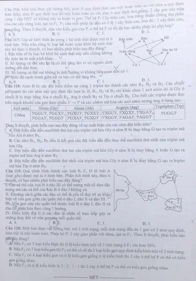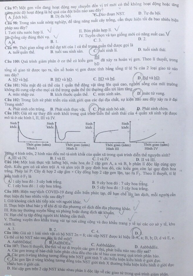 Mời các bạn thí sinh tham khảo đề thi môn Sinh học 2021 - Mã đề thi 202