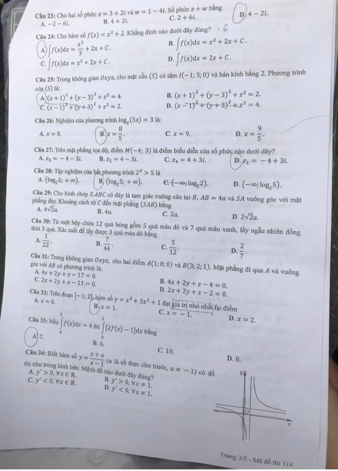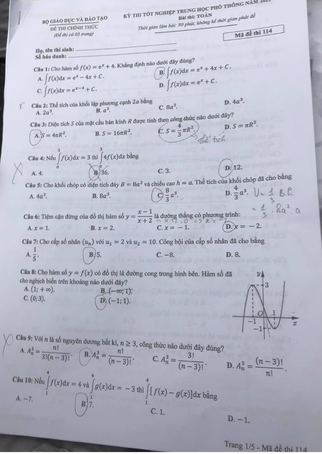 Mời các bạn thí sinh tham khảo đề thi môn Toán 2021 - tham khảo mã đề thi 114