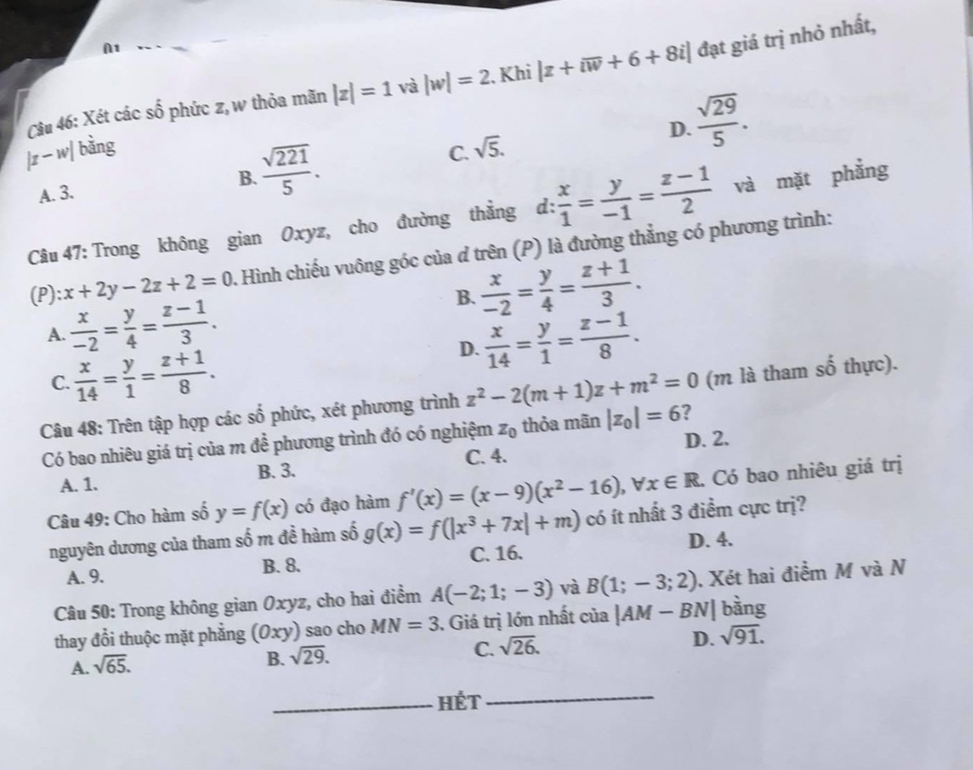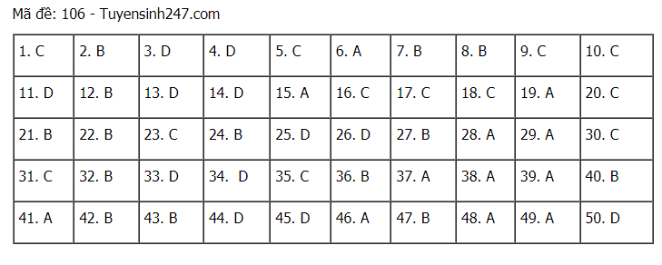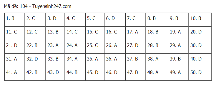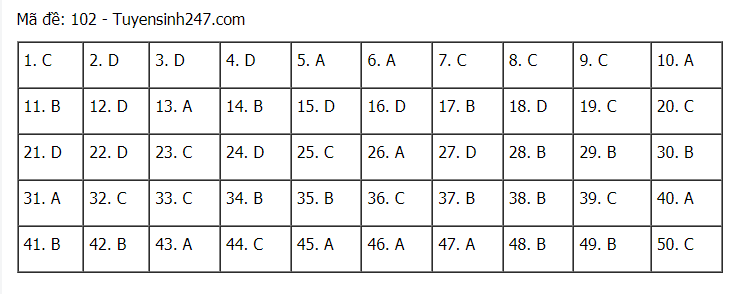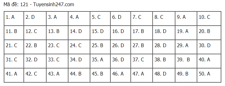 Tham khảo đáp án đề thi môn Toán kỳ thi tốt nghiệp THPT 2021 - đang cập nhật