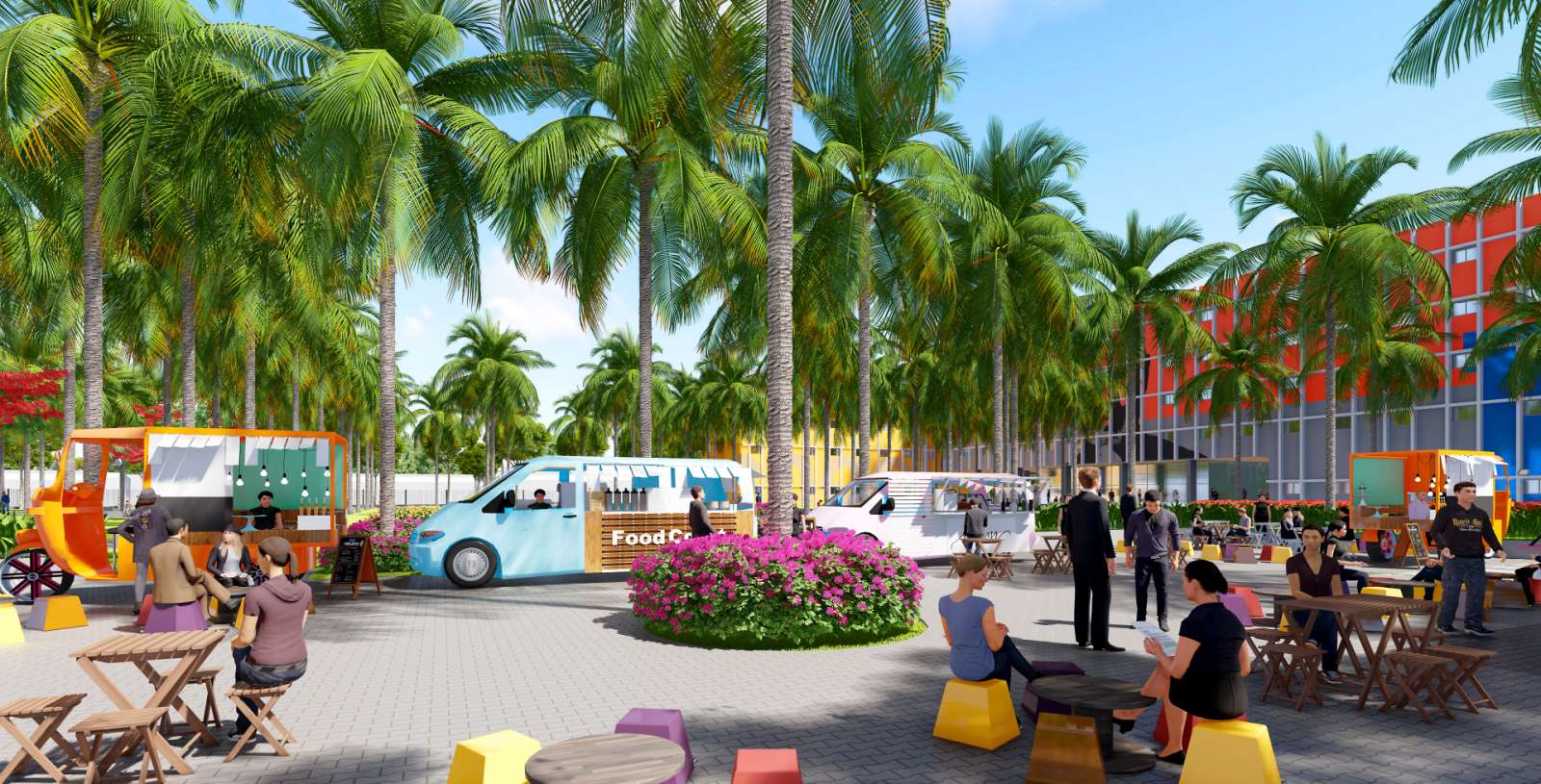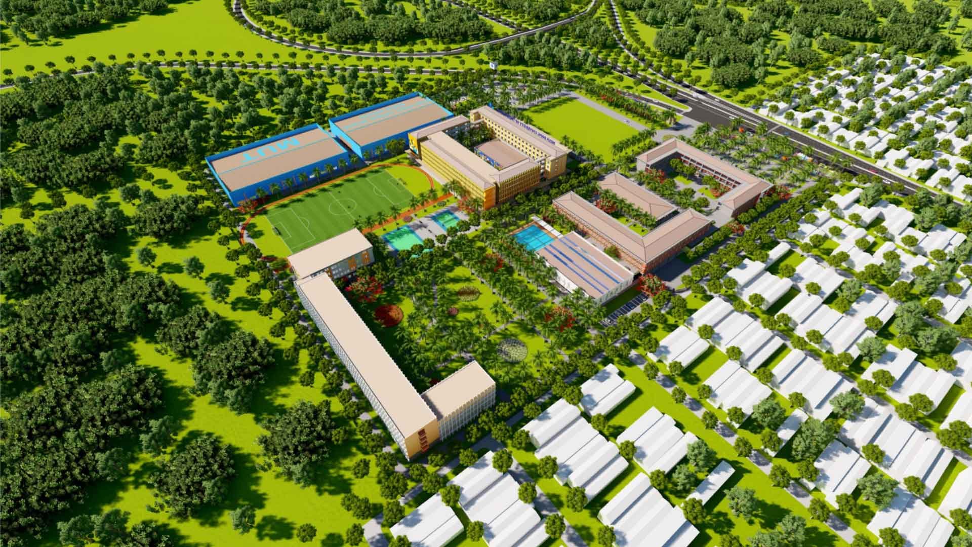 Phối cảnh tổng thể của cơ sở mới MUT từ trên cao tại huyện Thống Nhất, Đồng Nai hứa hẹn mang đến cho sinh viên không gian học tập hiện đại