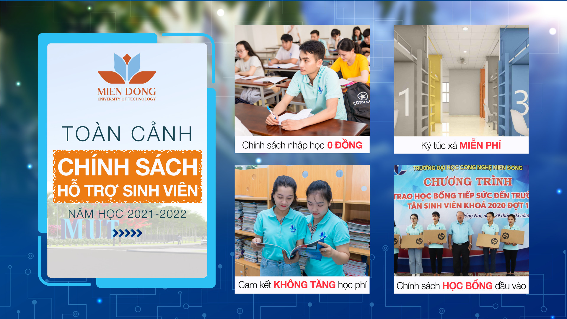 Với tinh thần thấu hiểu, sẻ chia và đồng hành cùng Quý Phụ huynh, các bạn sinh viên, tân sinh viên khi chuẩn bị bắt đầu năm học mới trong tình hình dịch bệnh, Trường Đại học Công nghệ Miền Đông đã có nhiều chính sách hỗ trợ học phí nhằm giảm bớt gánh nặng về tài chính cho các sinh viên của Trường.