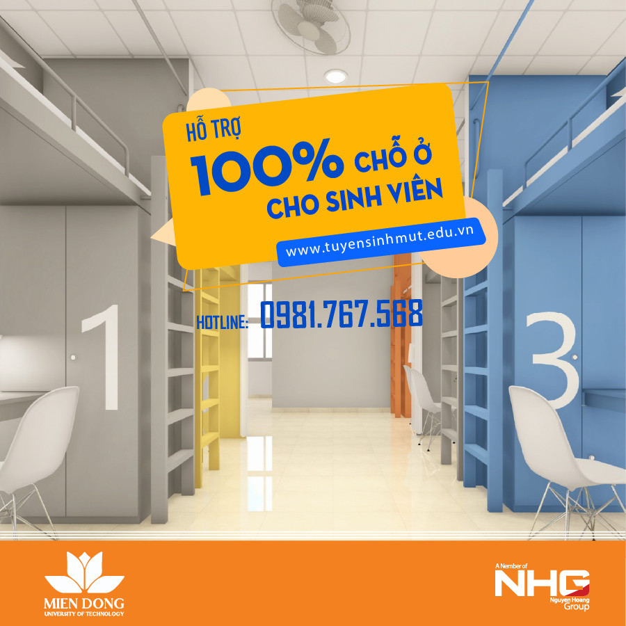 Nhà trường hỗ trợ 100% chỗ ở cho sinh viên theo tiêu chuẩn 3 sao