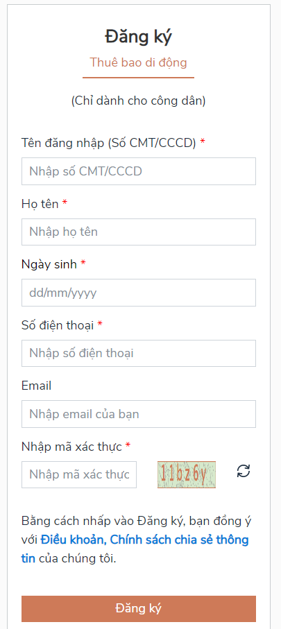 Đăng nhập bằng dịch vụ công sau đó nhập phiếu đăng ký