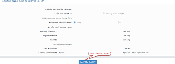 Bước 2: Sửa các thông tin, nhấn Cập nhật phiếu đăng ký để lưu các thông tin vừa sửa