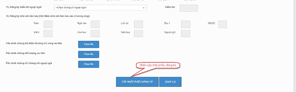 Bước 2: Sửa các thông tin, nhấn cập nhật phiếu đăng ký