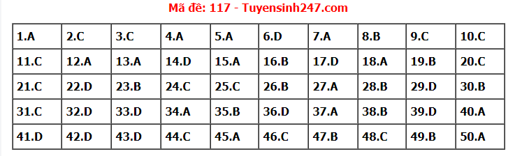 Đáp án tham khảo môn Toán THPT Quốc gia năm 2022, mã đề 117
