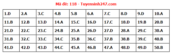 Đáp án tham khảo môn Toán THPT Quốc gia năm 2022, mã đề 118