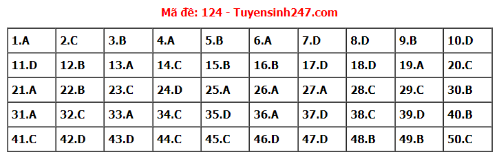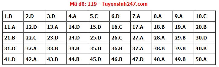Đáp án tham khảo môn Toán THPT Quốc gia năm 2022, mã đề 119