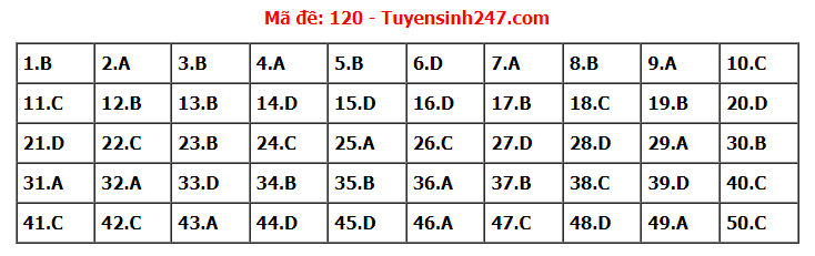 Đáp án tham khảo môn Toán THPT Quốc gia năm 2022, mã đề 120
