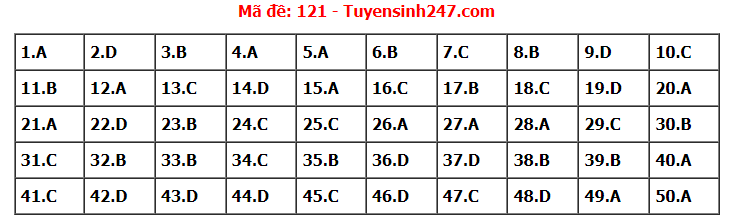 Đáp án tham khảo môn Toán THPT Quốc gia năm 2022, mã đề 121