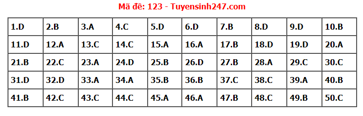 Đáp án tham khảo môn Toán THPT Quốc gia năm 2022, mã đề 123