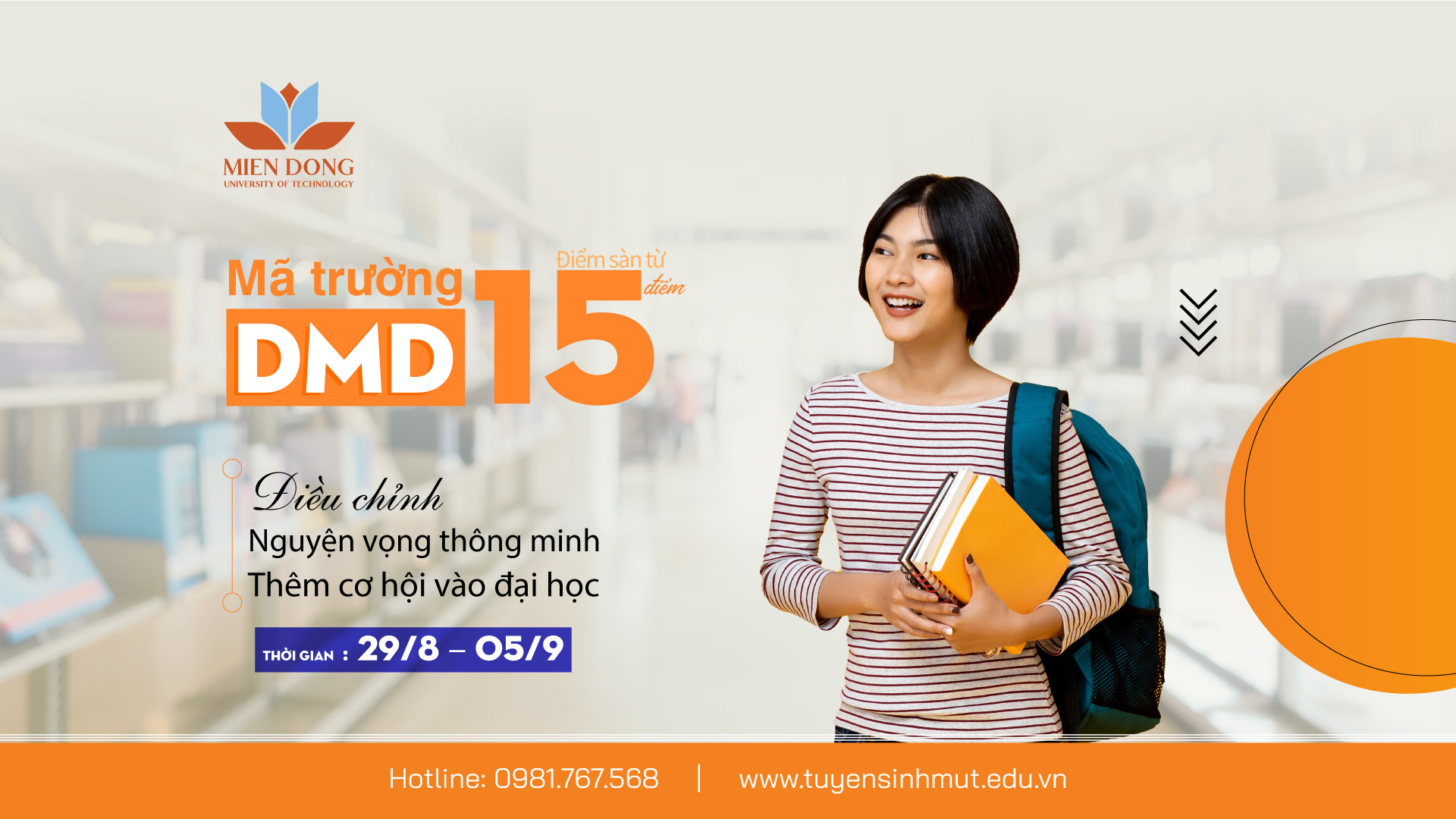 Từ ngày 29/8 đến 17h00 ngày 5/9 các thí sinh bước vào thời gian thay đổi nguyện vọng, và điều chỉnh nguyện vọng chính thức. Dưới đây, Trường đại học Công nghệ Miền Đông (DMD) hướng dẫn các bạn thí sinh thay đổi nguyện vọng vào MUT năm 2021: