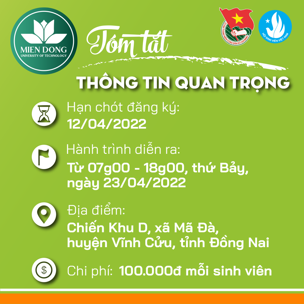 Toàn bộ quá trình tham gia “HÀNH TRÌNH VỀ NGUỒN 2022” các bạn sinh viên sẽ phụ thêm 100.000 vnđ/1 sinh viên (Tiền ăn trưa)