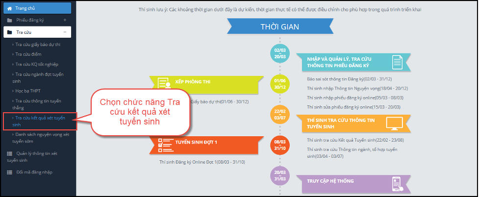 Bước 2: Vào menu Tra cứu kết quả xét tuyển sinh từ menu Tra cứu