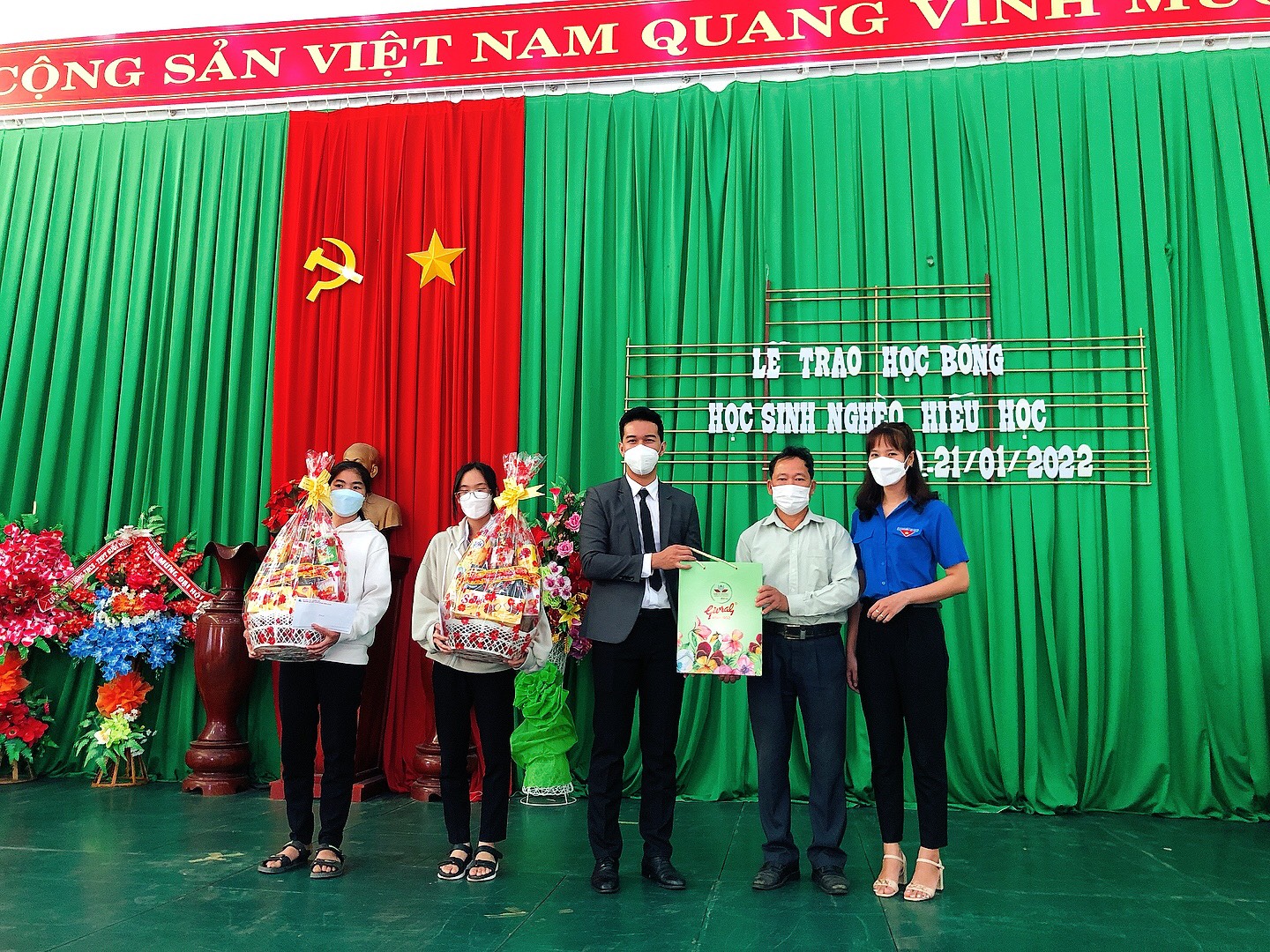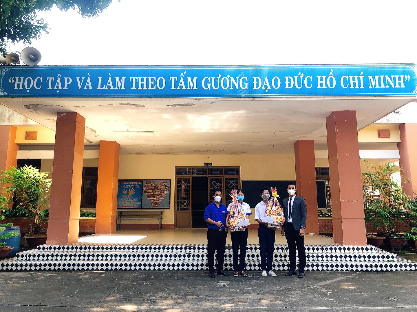 Đại diện Đoàn thanh niên Trường và Trung tâm Tuyển sinh – Truyền thông trao tặng quà Tết cho các học sinh THPT trên địa bàn huyện Thống Nhất, tỉnh Đồng Nai.