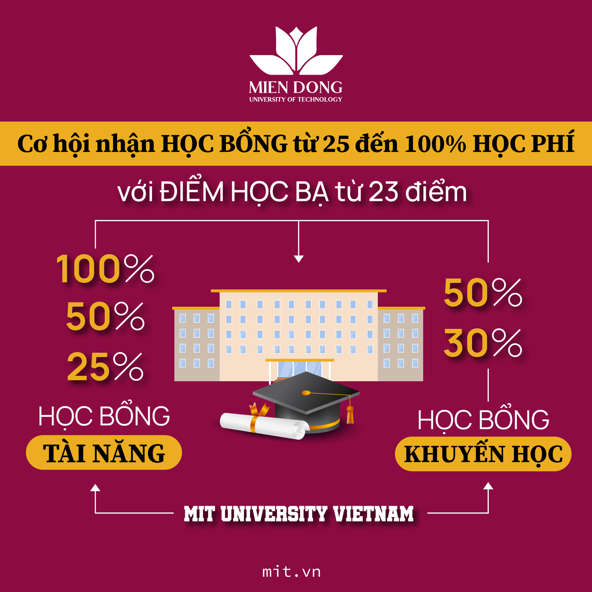 Dễ dàng theo đuổi con đường học tập và giảm gánh nặng tài chính cho gia đình từ những chính sách ưu đãi tài chính của MIT University. Đặc biệt, QUYỀN NĂNG HỌC BỔNG CHỈ DÀNH CHO 500 TÂN MIT-ERS với 08 TỶ - 500 SUẤT TRỊ GIÁ 100%, 50%, 30% và 25% ĐANG CHỜ BẠN!