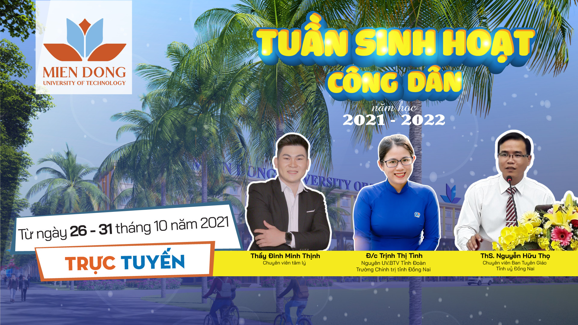 Sau chương trình “Chào đón Tân sinh viên”, từ ngày 26 đến 31/10/2021, sinh viên Trường Đại học Công nghệ Miền Đông (MUT) bước vào tuần sinh hoạt công dân cho sinh viên năm học 2021–2022. Đây là hoạt động thường niên hàng năm dành cho các tân sinh viên trúng tuyển vào nhà trường. Tuần lễ sinh hoạt công dân sẽ trang bị cho các em tân sinh viên những kiến thức cần thiết, những thông tin bổ ích để các em thêm tự tin bước vào năm học đầu tiên của cuộc đời sinh viên. Do vẫn phải tuân thủ các quy định phòng, chống dịch Covid-19, sinh viên chưa học tập trung, nhà trường tổ chức sinh hoạt bằng hình thức trực tuyến thông qua phần mềm Microsoft Teams.