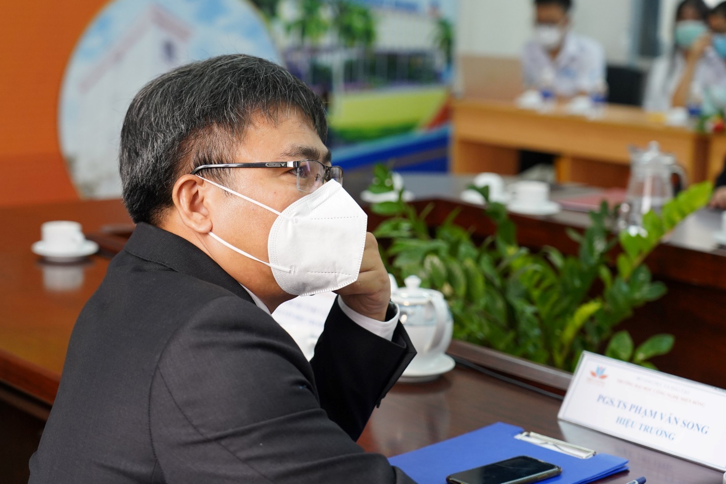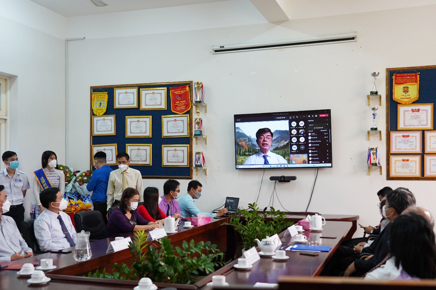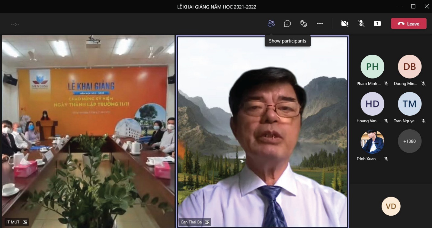 Buổi lễ khai giảng có sự tham dự của PGS. TS Thái Bá Cần - Phó tổng Giám đốc Tập đoàn Nguyễn Hoàng - Chủ tịch Hội đồng trường - thông qua phần mềm Ms Teams cùng các bạn sinh viên.