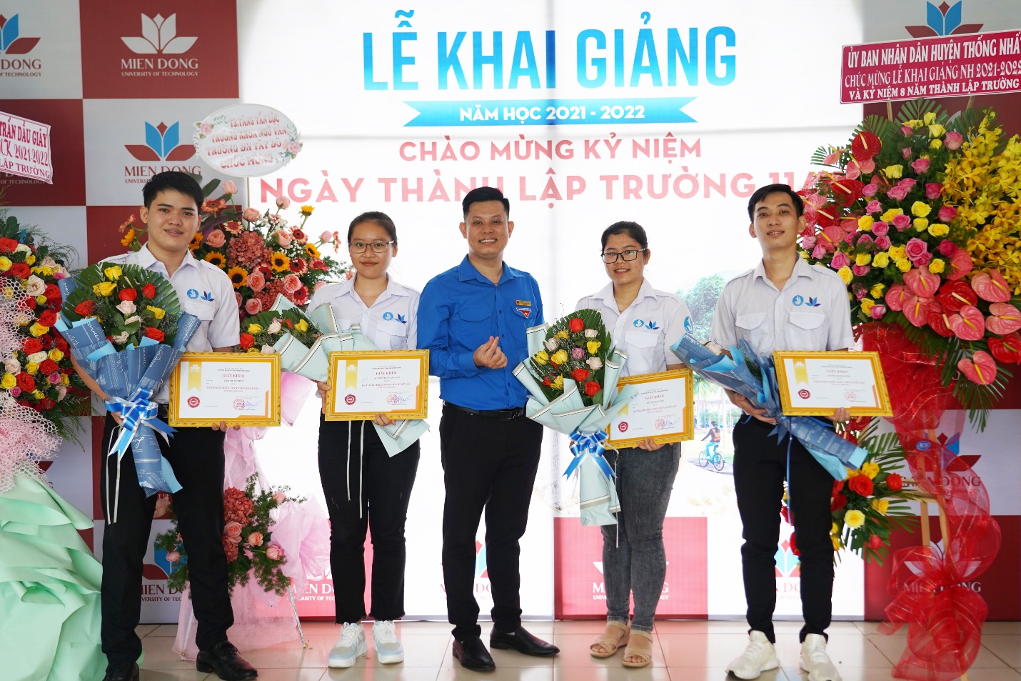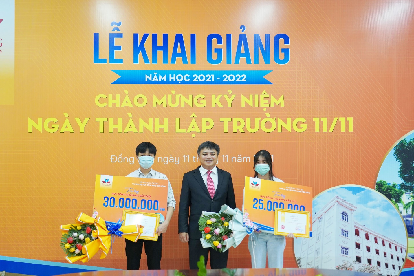 Nhân dịp này, nhà trường vinh danh và khen thưởng hơn 50 sinh viên xuất sắc, sinh viên giỏi và sinh viên khá vượt khó cùng 02 tân sinh viên thủ khoa đầu vào năm học 2021-2022.