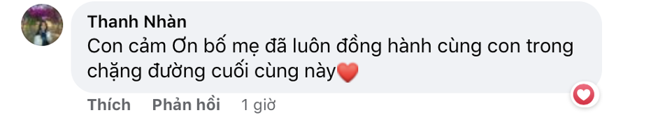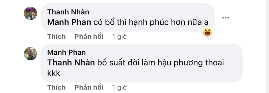 Bên dưới trạng thái của Bố, Thanh Nhàn cũng để lại bình luận cảm ơn sự ủng hộ của Bố Mẹ