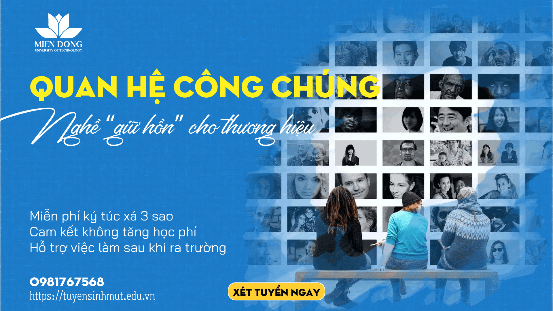 Tại MUT ngành Quan hệ công chúng được nhà trường chú trọng đào tạo thực tiễn, lý thuyết đi đôi với thực hành. Với hệ thống giáo dục hiện đại, môi trường học tập năng động, đội ngũ giảng viên chuyên nghiệp hàng đầu khu vực và dày dặn kinh nghiệm. Cơ sở vật chất cùng các trang thiết bị hiện đại phục vụ sinh viên thực hành, thực tập ngay khi còn ngồi trên ghế giảng đường. Đây là nơi tuyệt vời để bạn thực hiện ước mơ trở thành người giữ hồn cho thương hiệu.