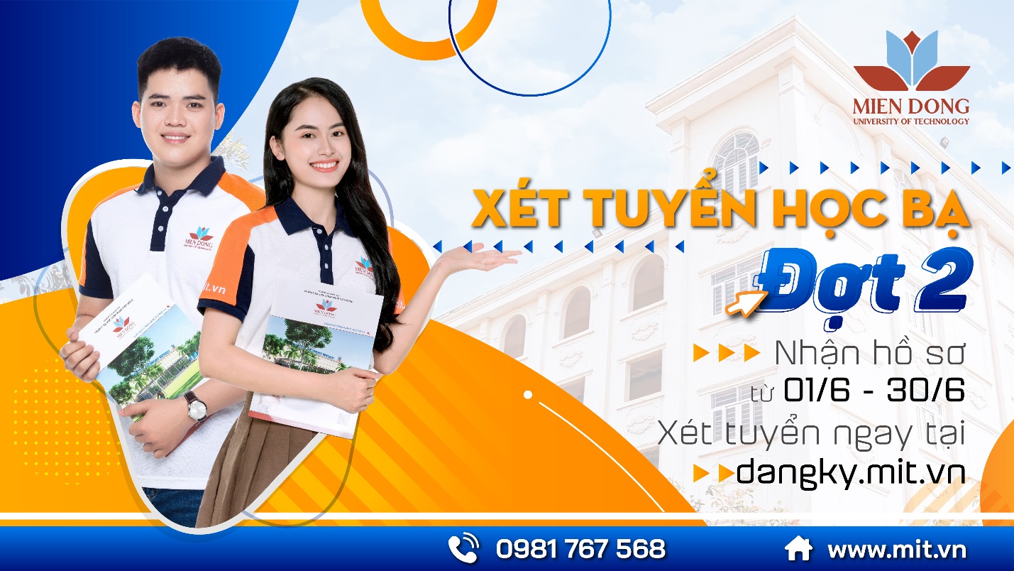 Ngày 1/6/2022, Hội đồng tuyển sinh Trường Đại học Công nghệ Miền Đông (Mã trường: MIT) chính thức nhận hồ sơ xét tuyển học bạ THPT đợt 2, gồm xét tuyển học bạ lớp 12 theo tổ hợp 03 môn và xét tuyển điểm 3 học kỳ (HK1, HK 2 lớp 11 và HK 1 lớp 12).