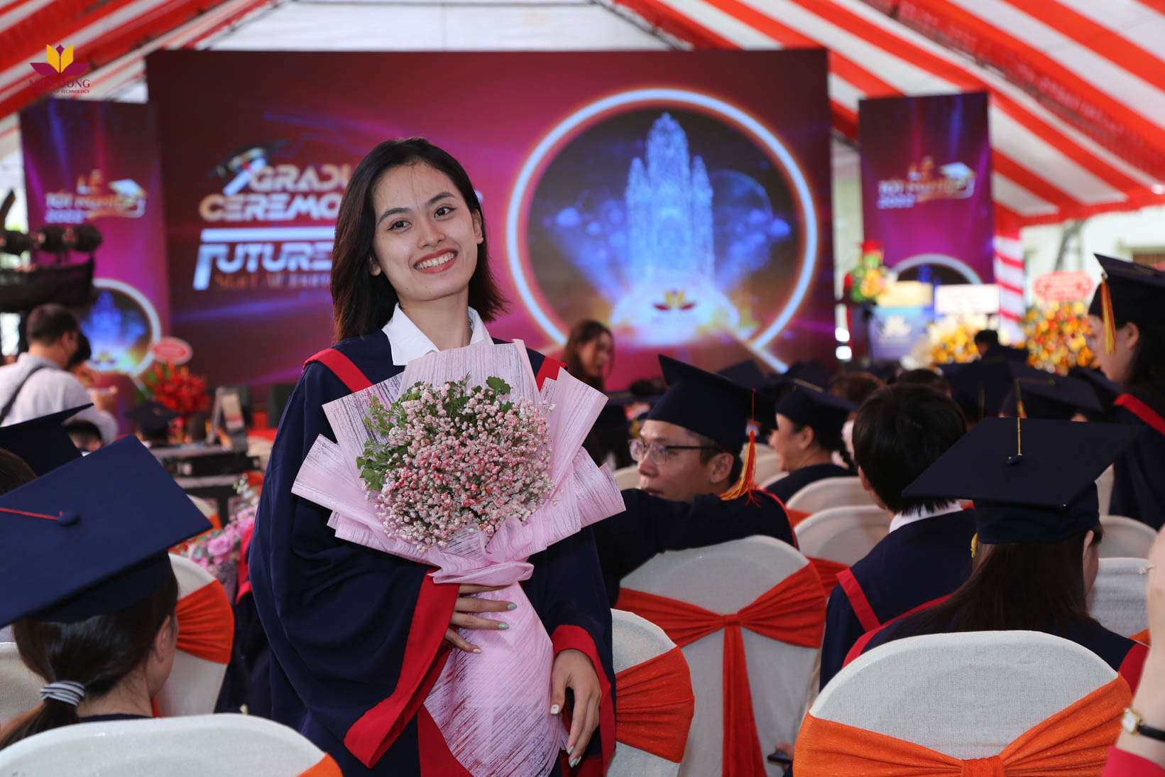 Lễ tốt nghiệp 2022 lấy chủ đề “bệ phóng đến tương lai”, Nhà trường mong muốn với những gì các tân khoa được trang bị tại nhà trường, cùng với bản lĩnh của các em sẽ là hành trang, là bệ phóng giúp các em tự tin ‘dấn thân' vào vô vàn hành trình chinh phục mới. Hơn hết, mỗi sinh viên cần chinh phục chính bản thân mình để vững vàng vượt qua mọi khó khăn thử thách, tự tin bước đến mọi nơi trên Trái Đất, xa hơn nữa là trong vũ trụ bao la rộng lớn nhiều tiềm năng chưa được khám phá.
