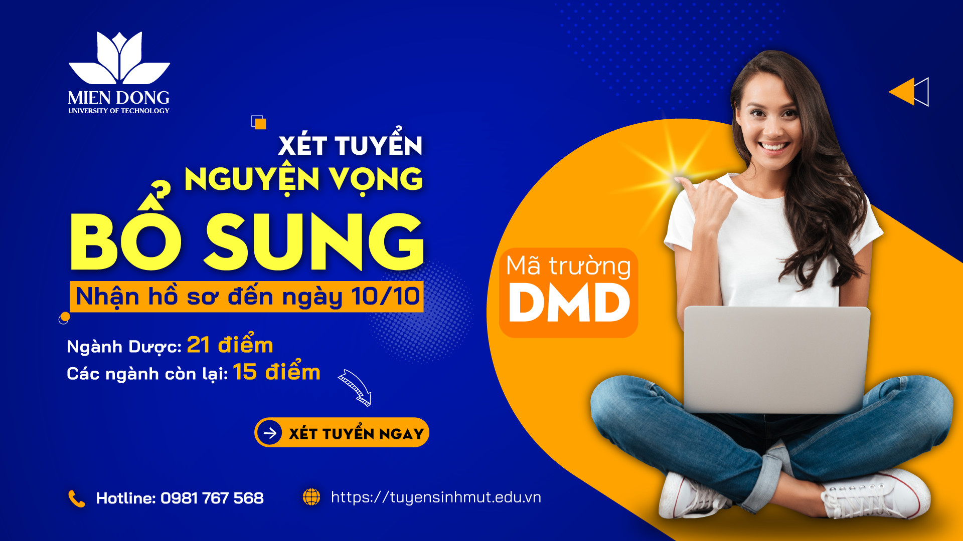 Hội đồng tuyển sinh Trường Đại học Công nghệ Miền Đông thông báo xét tuyển nguyện vọng bổ sung cho 11 ngành đại học chính quy theo quy định của Bộ GD&ĐT đối với điểm thi THPT năm 2021.