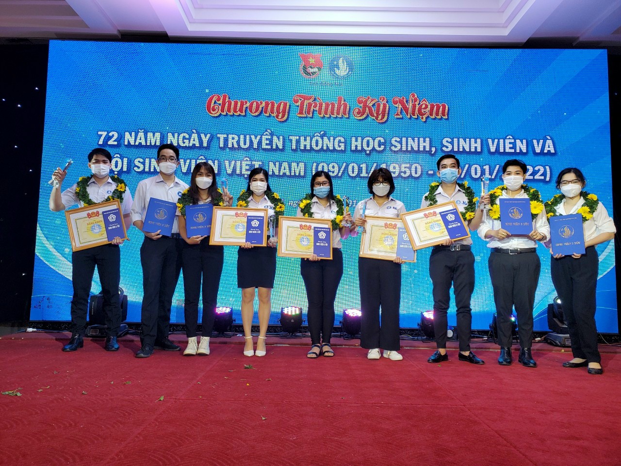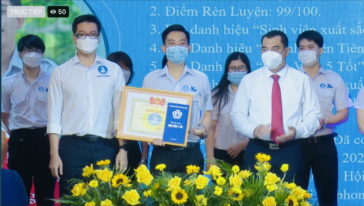 Đồng chí Chung Bách Xuyên nhận giải thưởng Sinh viên 5 tốt - thứ 3 từ bên trái qua