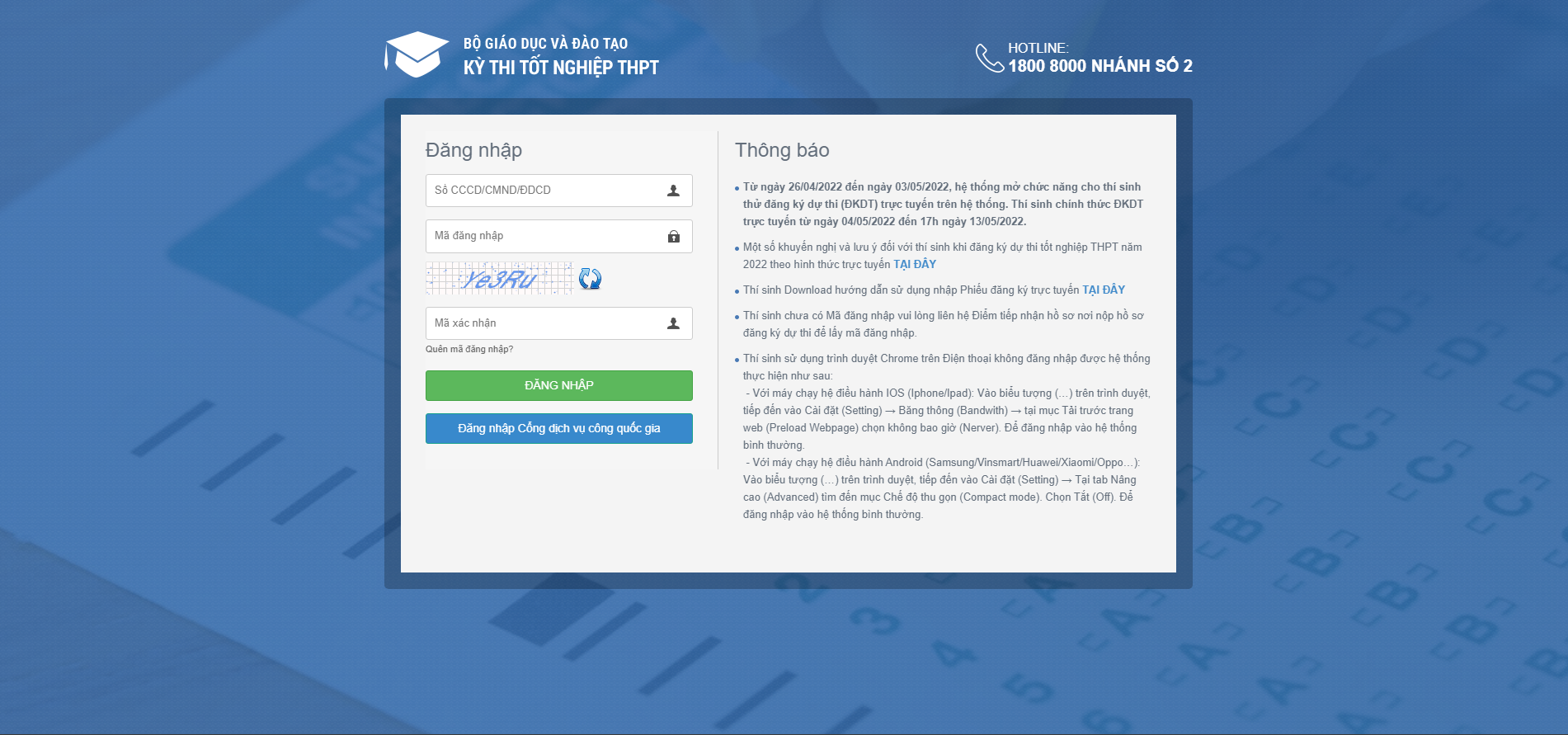 Theo hướng dẫn tuyển sinh của Bộ GD-ĐT, việc đăng ký nguyện vọng xét tuyển theo nhiều hình thức phải thực hiện trực tuyến trên hệ thống hỗ trợ tuyển sinh chung của Bộ GD-ĐT. Trên đường link https://thisinh.thithptquocgia.edu.vn hoặc Cổng Dịch vụ công Quốc gia. Thí sinh sử dụng tài khoản đã được cấp để nhập, chỉnh sửa và xem thông tin nguyện vọng của mình trên hệ thống.
