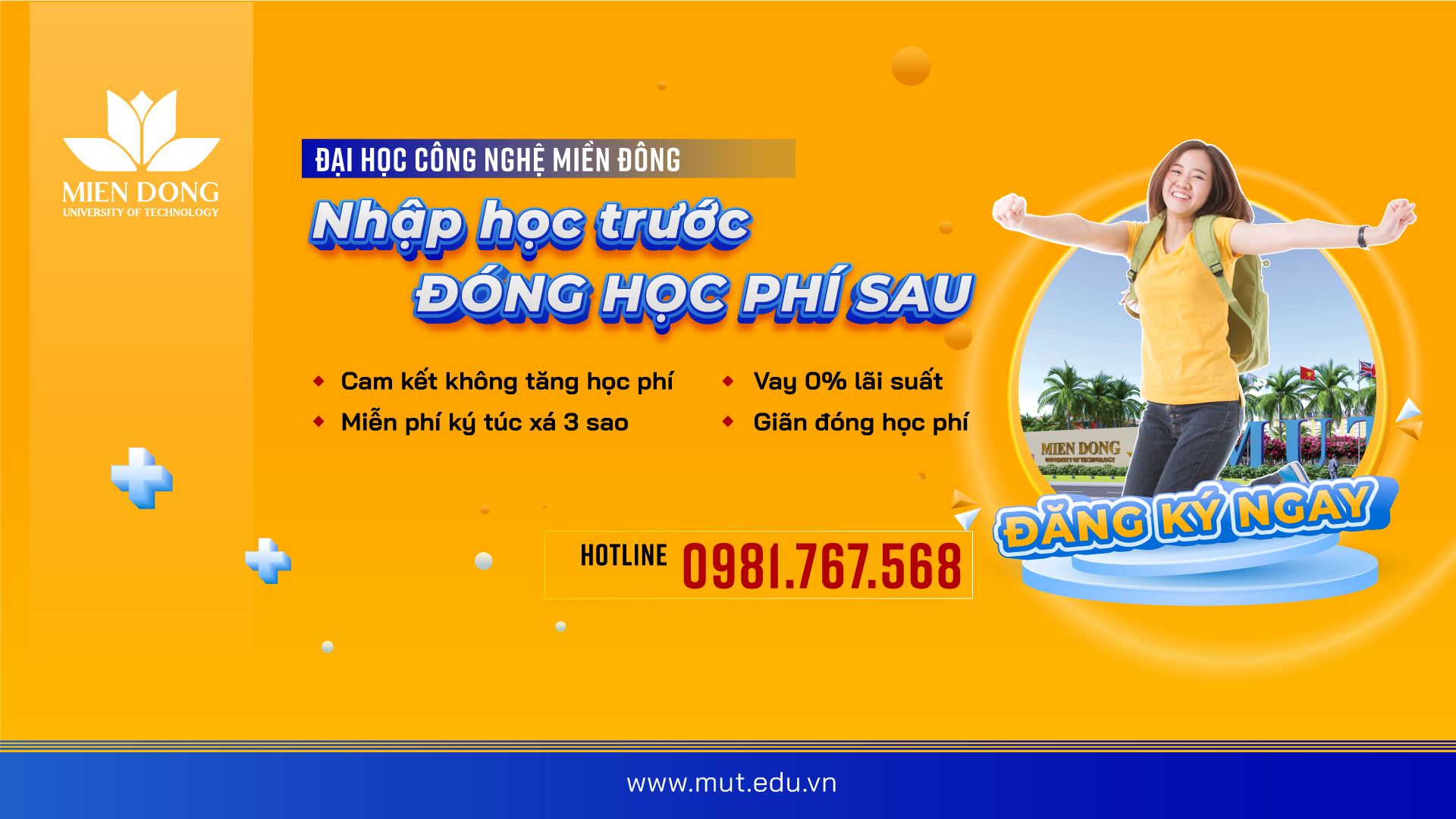 Đặc biệt, Trường Đại học Công nghệ Miền Đông (MUT) vừa mới ban hành chính sách học phí nhằm hỗ trợ các sinh viên của Trường trong điều kiện dịch bệnh diễn biến khó lường hiện nay. Theo đó, MUT hỗ trợ phụ huynh vay ngân hàng với lãi suất 0% trong 12 tháng để hoàn tất học phí nhập học. Phụ huynh không cần đóng tiền nhập học ban đầu, mà có thể làm thủ tục vay để ngân hàng trả thay học phí. Sau 12 tháng, phụ huynh và sinh viên hoàn trả vốn gốc cho ngân hàng.