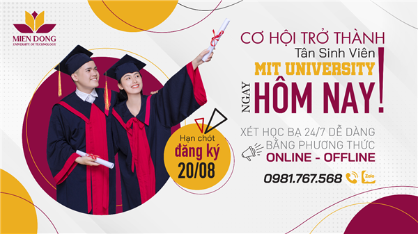 MIT University nhận hồ sơ xét tuyển đến 20.8 với 16 ngành và 32 chuyên ngành đào tạo bằng 04 phương thức xét tuyển. Chắc suất trúng tuyển sớm khi đặt MIT ở nguyện vọng 1, cơ hội nhận 500 suất học bổng giá trị và nhiều ưu đãi tài chính hấp dẫn.